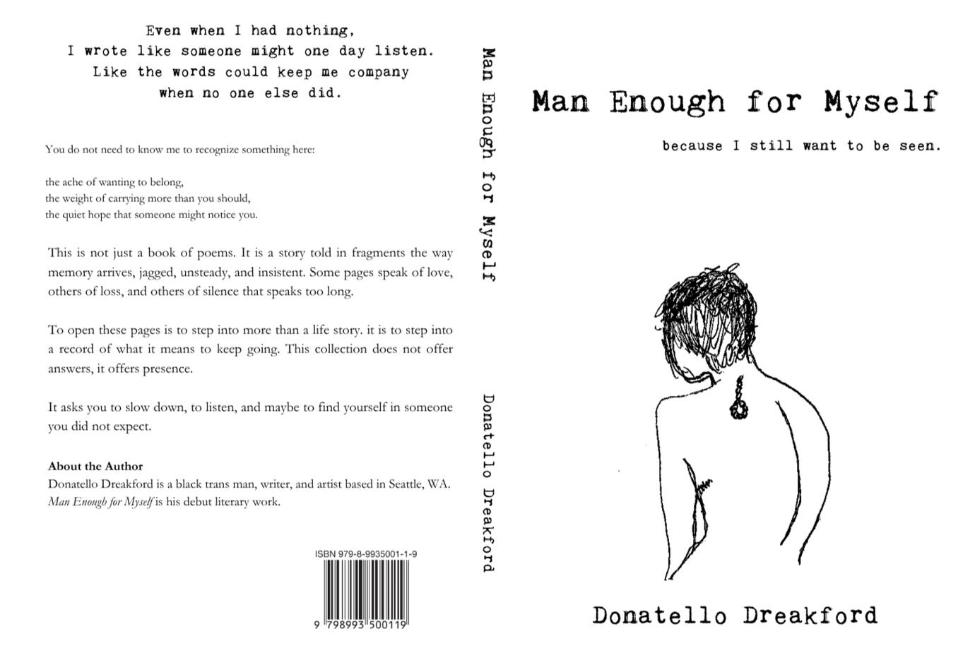 Man Enough For Myself is my debut literary work and the most personal work I’ve ever shared.It's a coming of age memoir in poems, and they don’t look away.They move through addiction, poverty, queerness, transition, and the weight of being Black in a world that would rather erase you. They tell of hunger and survival, of fathers and brothers, of chosen family, of learning to surface again after burying yourself.This is my story. And maybe, in these pages, you’ll find pieces of your own.